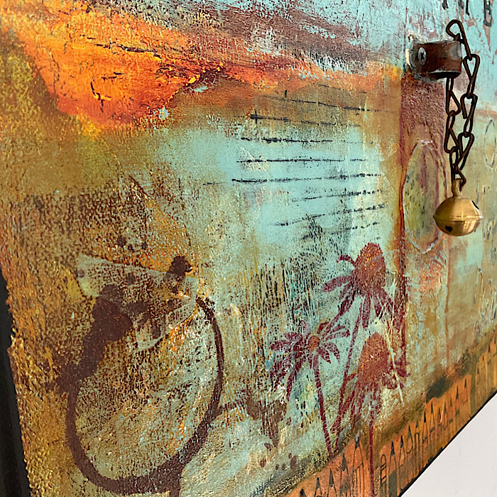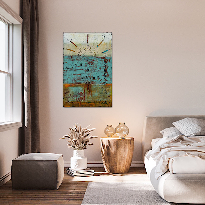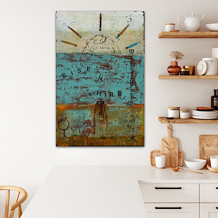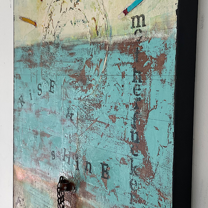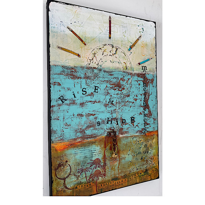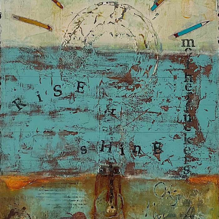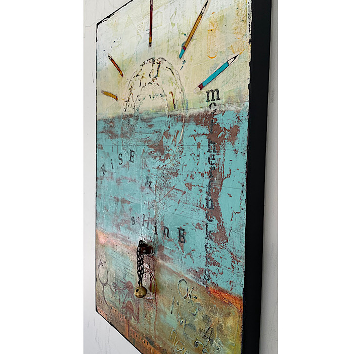 He is an artist, hence the sunrays being pencils, and the bell for a little morning inspiration!